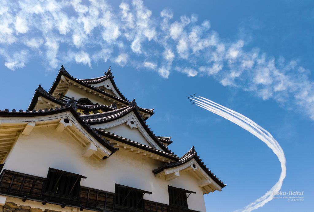 この日、街のどこかから真っ白なスモークが見えたら、それはまさにブルーインパルスの軌跡です。
