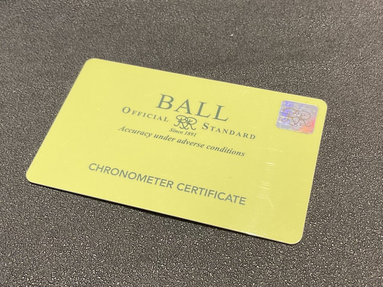 品番はNM9036C-S3CJ-BKR。ムーブメントには自動巻きのボールキャリバーRR1102-Cを搭載し、スイスC.O.S.C認定クロノメーターを取得。28,800振動/時の滑らかな秒針の動き、25石のルビーによる耐久性、さらに42時間のパワーリザーブを備え、精度・耐久性ともに抜群です。