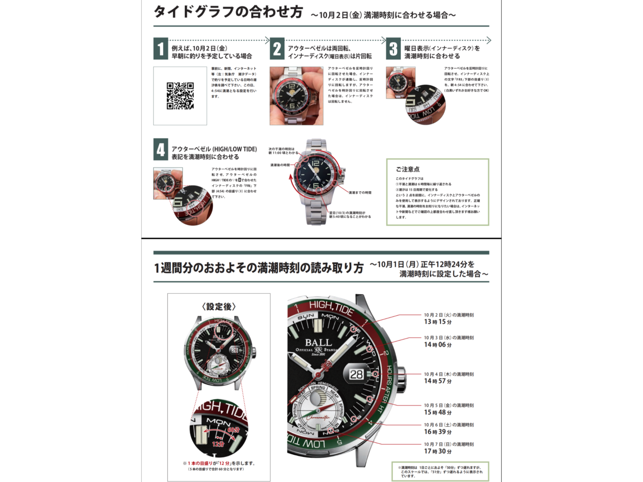 機械式時計としては非常に珍しい「満潮・干潮」「大潮・小潮」の潮汐表示機能を備えています。