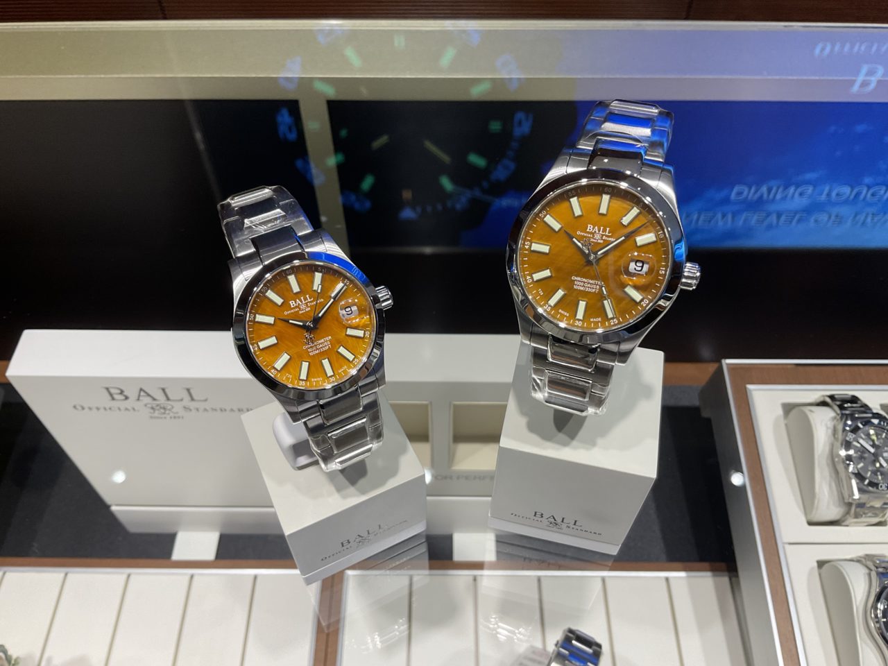 現在店頭には、40mmモデルもご用意しております。サイズ感や印象の違いを、ぜひ実際に着け比べてみてください。36mmと40mmでは雰囲気が大きく変わるため、ご自身の腕元に合う一本を見つけていただけると思います。