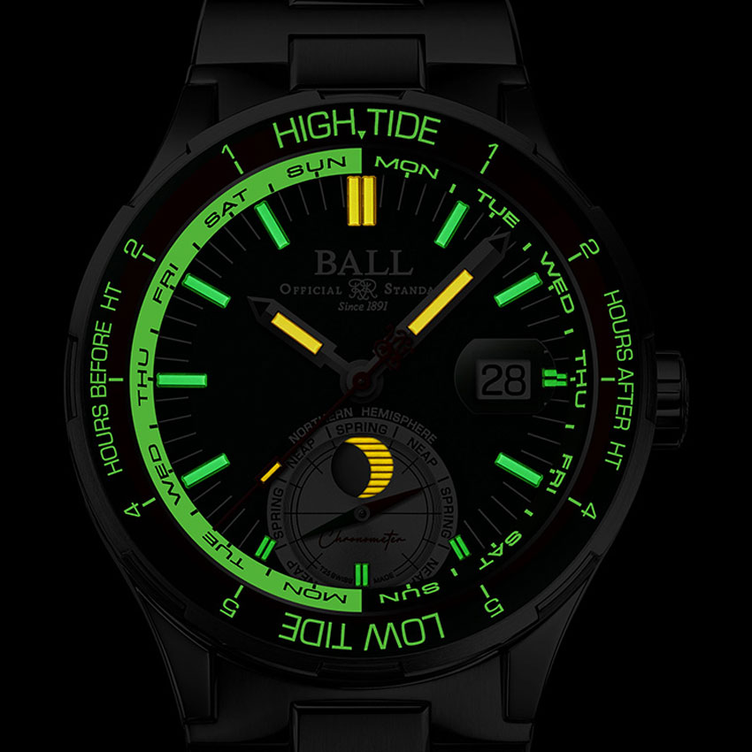潮のリズム、月の周期、そして時の流れ。これら自然の力を機械式構造で捉えた「オーシャン エクスプローラー」は実用計器としての精度と、ボール ウォッチが誇るエンジニアリングの粋を融合した海と時を知る者のための本格メカニカル・ウォッチです。