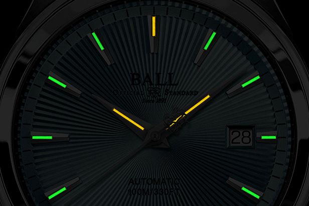時分秒針/日付表示/針と文字盤に14個の夜光用マイクロ・ガスライト